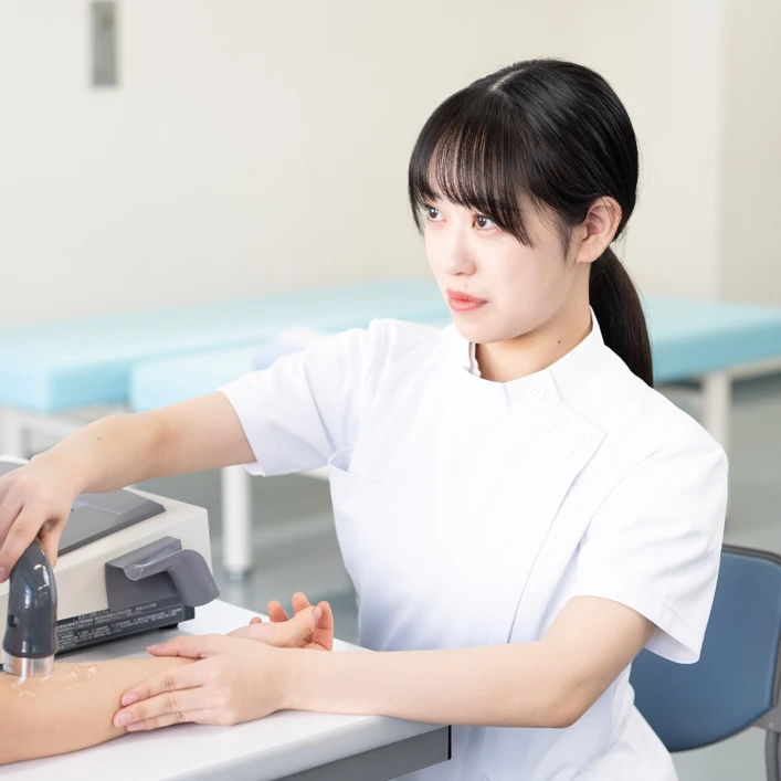 現場に出てから困らないための実習はとても大切です。専門学校東京医療学院では、学生一人ひとりが確実に実習を行うための学びやサポート体制は万全です。少人数制教育も相まって疑問や悩みはすぐに解決できる環境を用意しています。