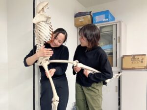 入学したばかりの時は分からなくても、実習室に骨があるので授業はもちろん、普段から見て触って五感で覚えることができます。