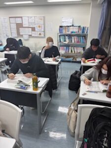 先日広報用のネタ探しのために校内をうろうろしていたら、夜間部4年生の学生たちが早く来て勉強していました。