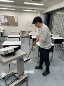 ちなみに、掃除中に早く来ている学生と雑談をするのですが、普段授業では話さないようなことも話し合えたりします。