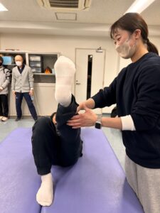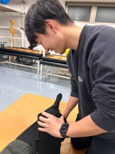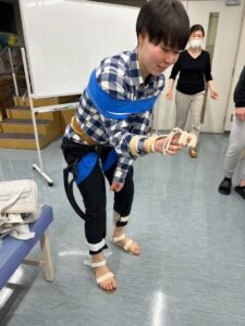 実際に体験した学生に聞いてみると、「股関節の制限を作った場合が、一番動かしづらかったです💦」とのことでした。