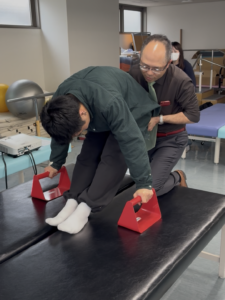 今回の授業では、そんな脊髄損傷の方の生活動作を理解する一環として、プッシュアップによる移動を実践しました。